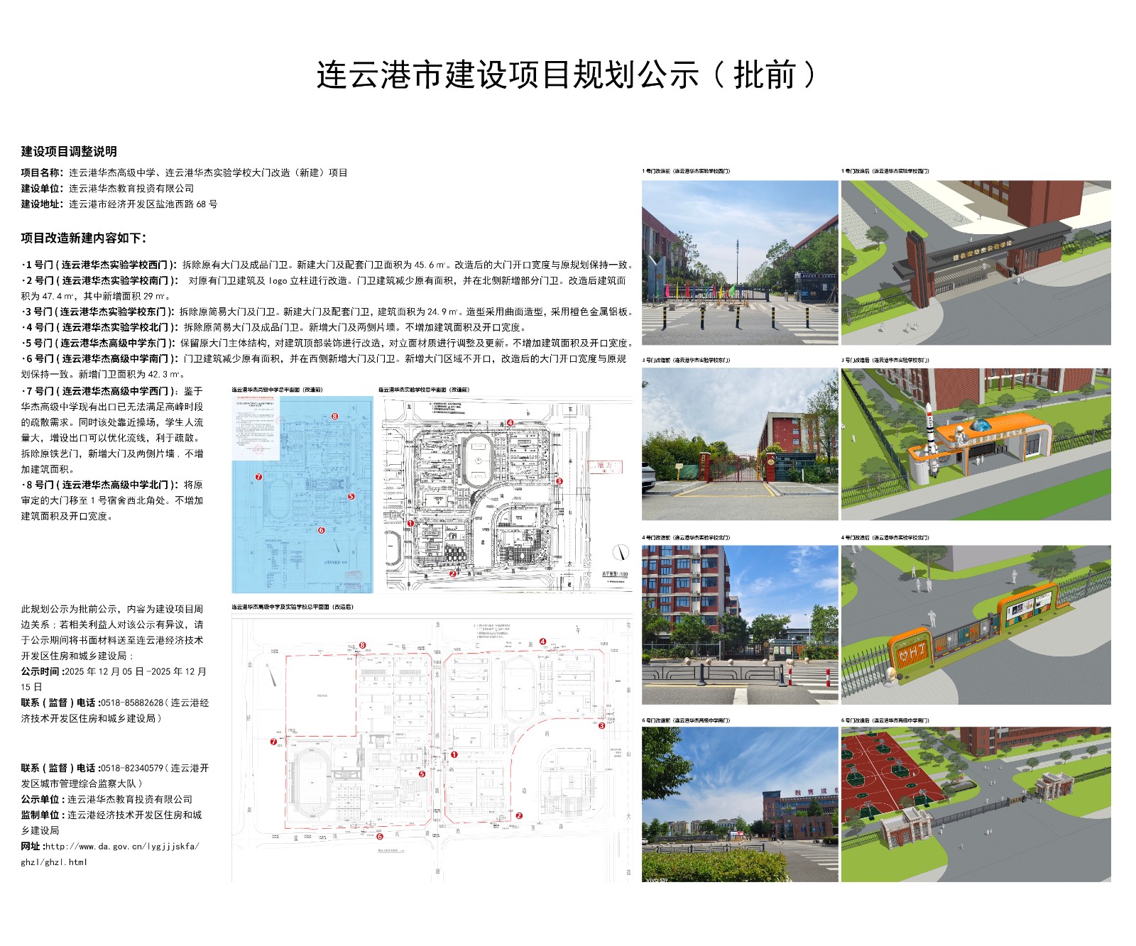 連云港華杰高級中學華杰實驗中學大門改造項目(批前調整)公示
